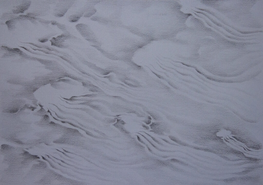 ¿En qué pensamos cuando pensamos en las nubes? ¿Son el objeto de nuestros pensamientos, o tal vez su contenedor abstracto? La artista chilena Valentina Guerrero Marín aborda estas preguntas para desarrollar una amplia investigación sobre la naturaleza de las nubes, nuestras interpretaciones culturales y el potencial filosófico que sugieren. Partiendo de la manifestación de las nubes como presagios del futuro, y en particular como predictores de catástrofes, ha desarrollado una amplia obra compuesta por escritos, dibujos, fotografías, instalaciones, dispositivos ópticos, vídeos y formatos de observación participativa.